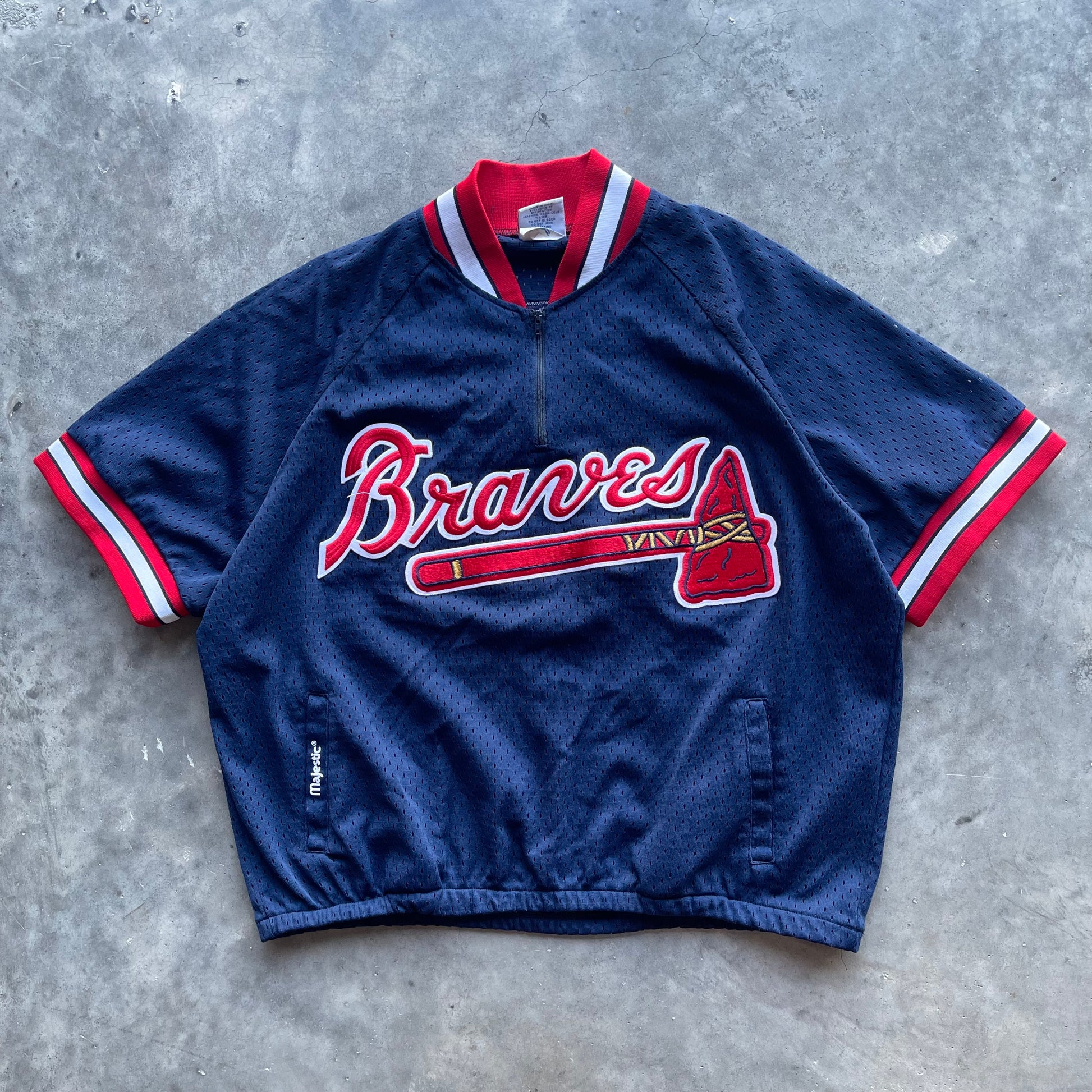 (XL) 90s Atlanta Braves Batting Practice Quarter Zip "Woods" Jersey